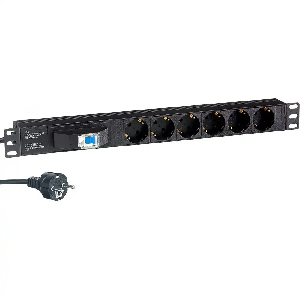 горизонтальный блок розеток, для 19' стойки, 1U, ток: 16 А, выходные розетки: 6xSchuko, вход: Schuko, нагрузка до 3500 Вт