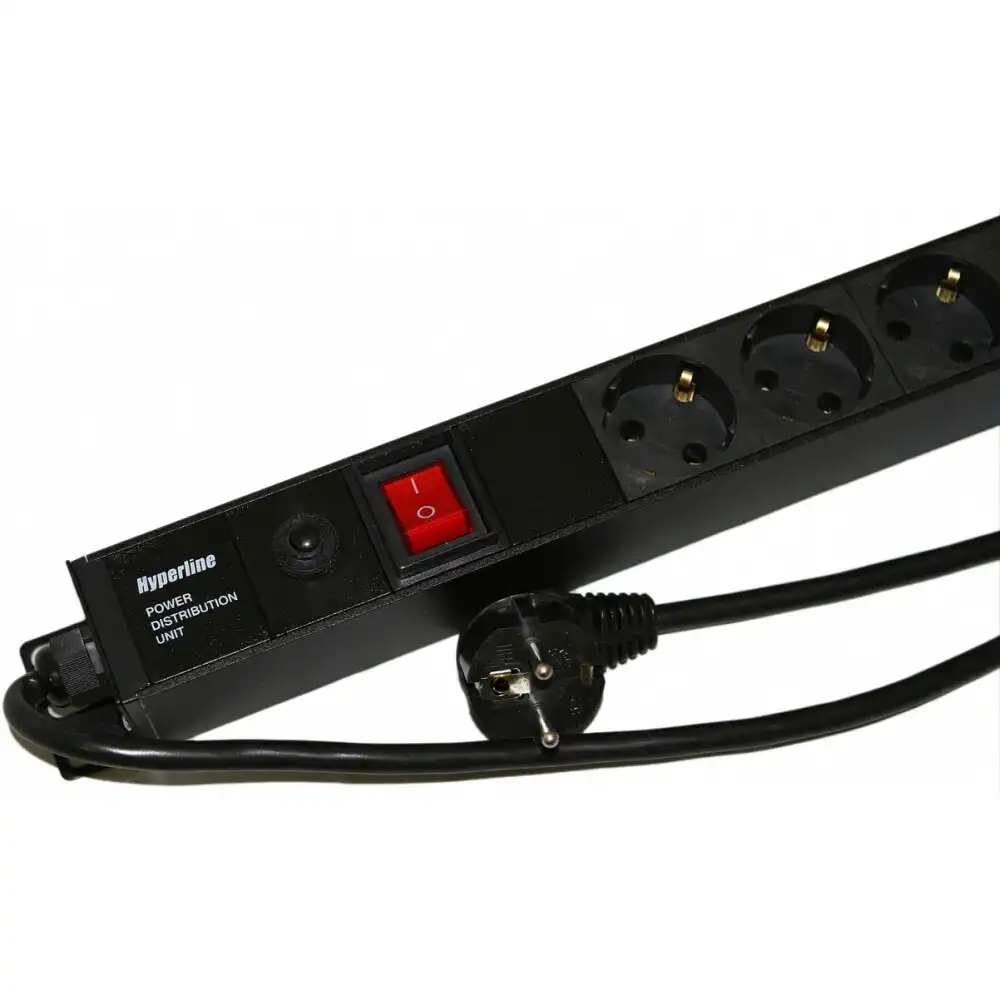 горизонтальный блок розеток, для 19' стойки, 1U, ток: 10 А, выходные розетки: 8xSchuko, вход: IEC 320 C14, нагрузка до 2200 Вт