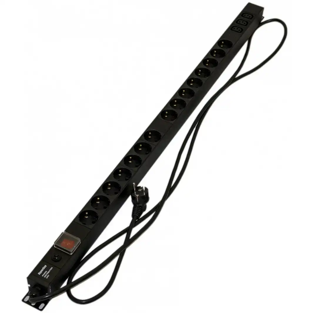 вертикальный блок розеток, однофазный, ток: 16 А, выходные розетки: 15xSchuko, 3xIEC C13, вход: Schuko, нагрузка до 4000 Вт
