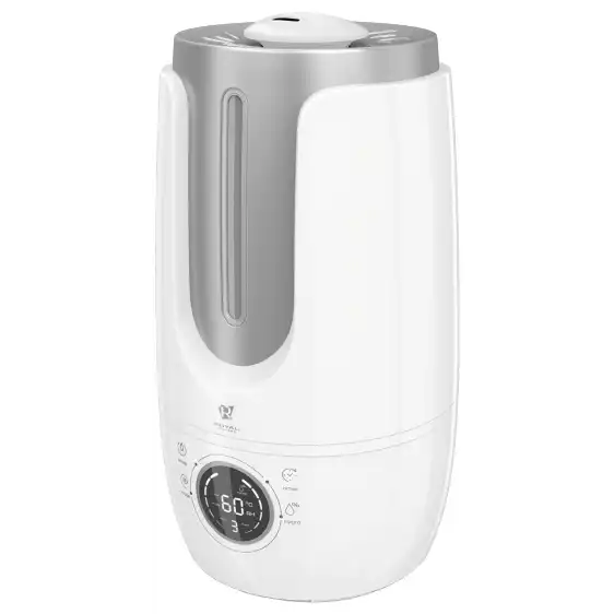 увлажнитель воздуха ультразвуковой, обслуживаемая площадь 45 кв.м, регулировка скорости работы, электронное управление, таймер, пульт ДУ, дисплей, объем резервуара для воды 5 л, уровень шума 35 дБ