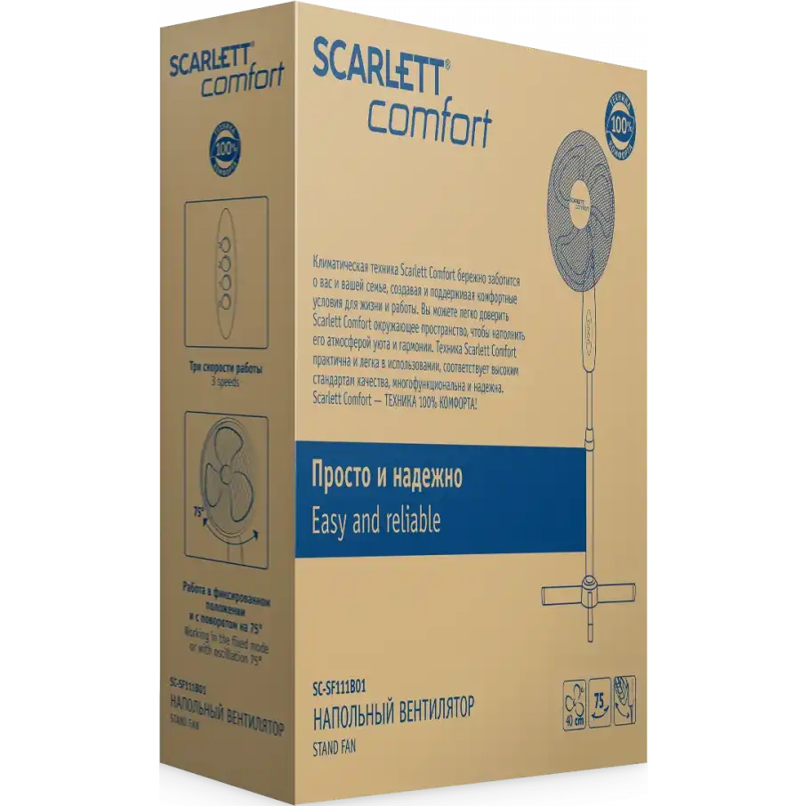 12 мес., напольный, от сети, 3, Scarlett, www.scarlett.ru, да, да, 40, 45, да, 30 градусов, 75, 52, длина шнура 1.4м, 530 x 1250 x 530 мм, SC-SF111B01
