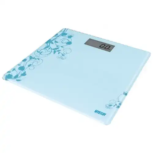 голубой, 12 мес., www.mysteryelectronics.ru, Mystery, да, стекло, электронные, 0.1, да, кг, 150, индикация превышения максимально допустимого веса, индикация разряда элементов питания, MES-1830