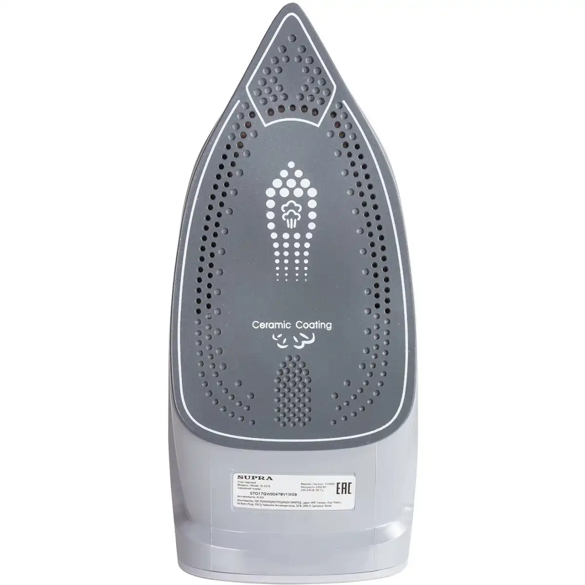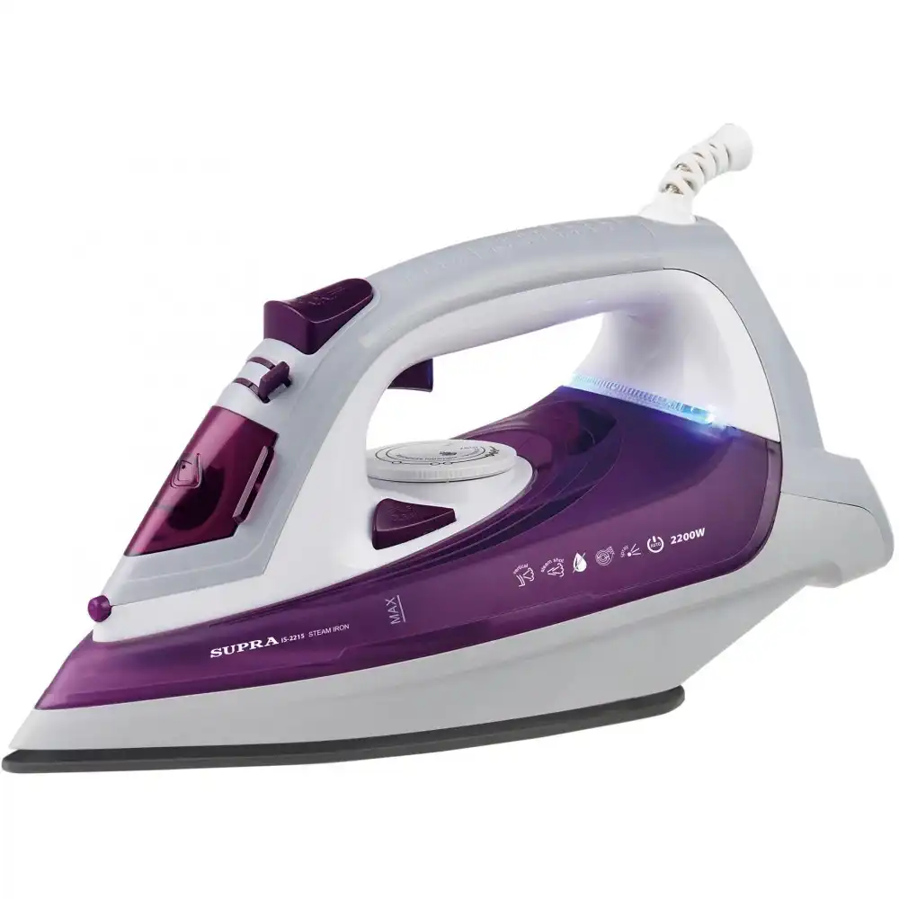 мощность: 2000 Вт, расход при постоянной подаче пара: 25 г/мин, расход при паровом ударе: 130 г/мин, объём резервуара для воды: 220 мл, подошва: керамика (Super Ceramic)