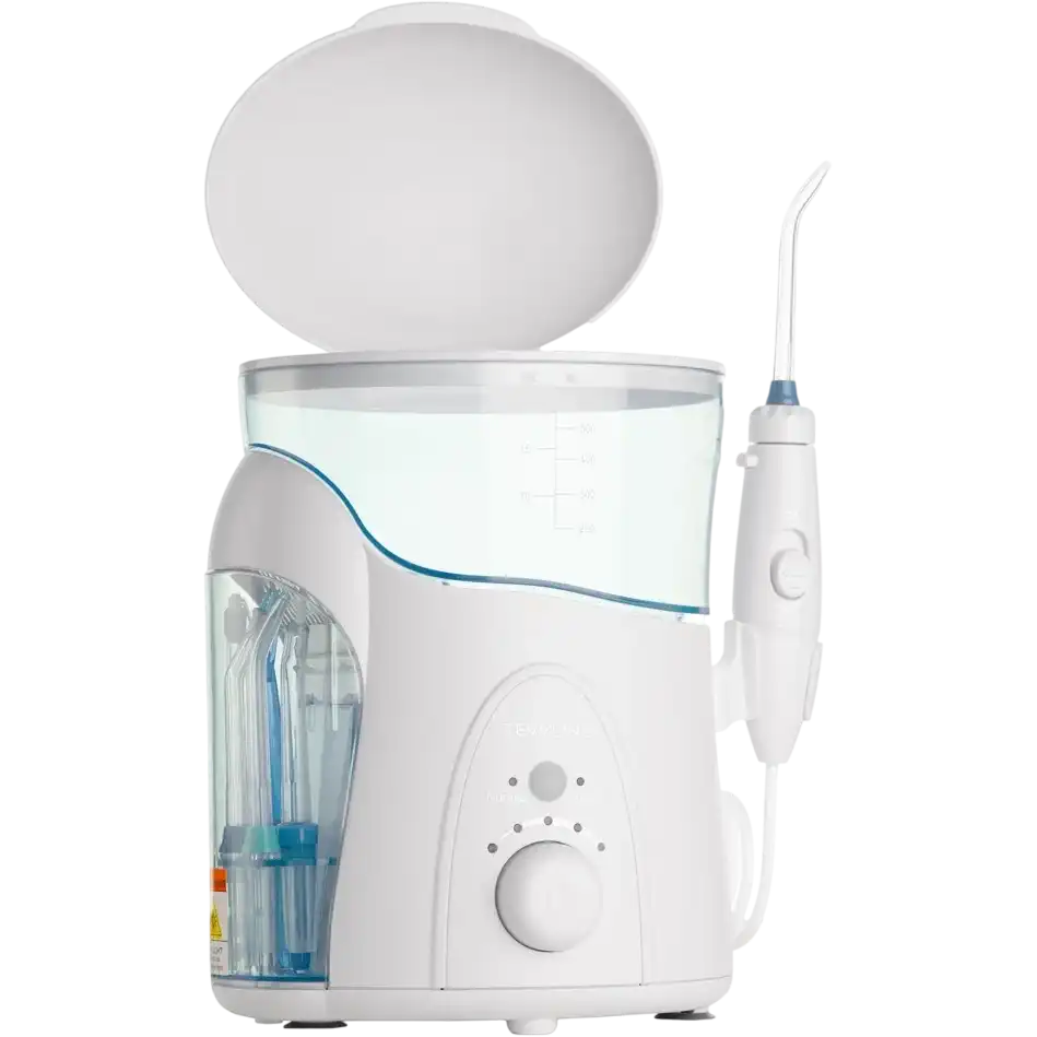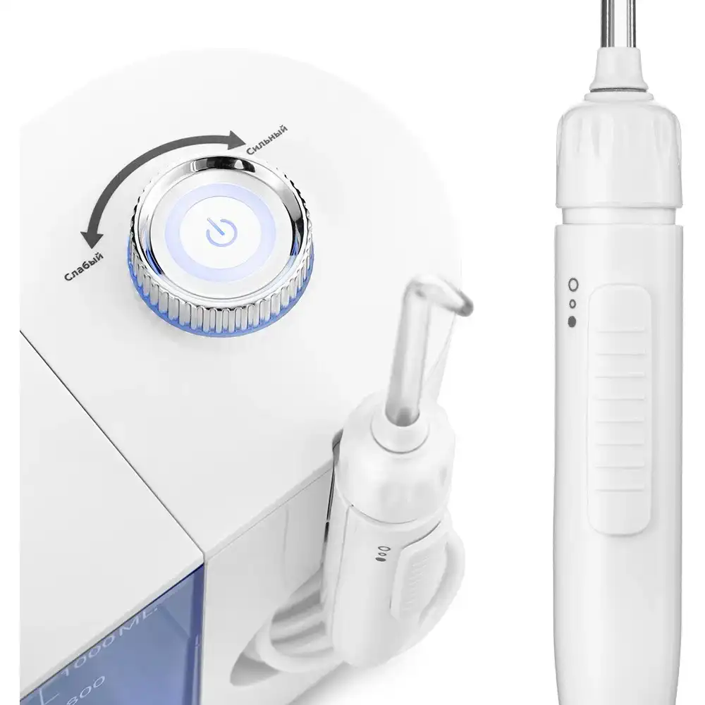 стационарный ирригатор, частота пульсации струи: 1200-1700 имп/мин, количество режимов работы: 2, ёмкость резервуара: 600 мл, количество насадок в комплекте: 7