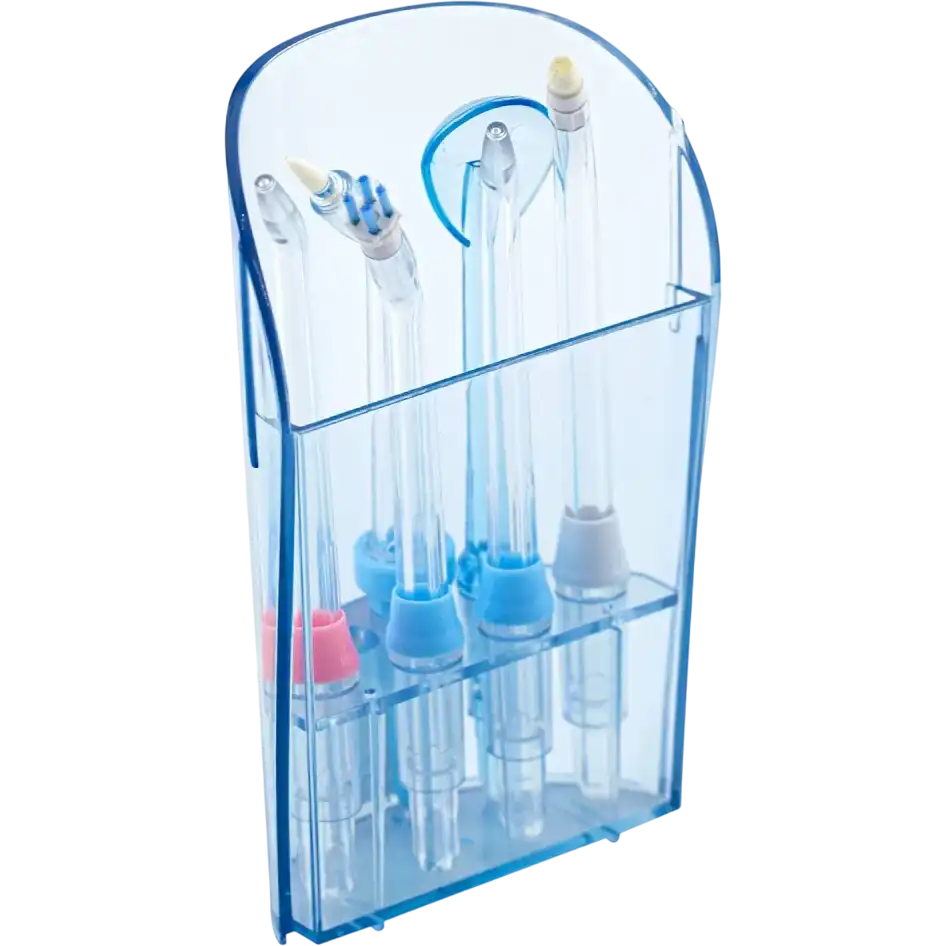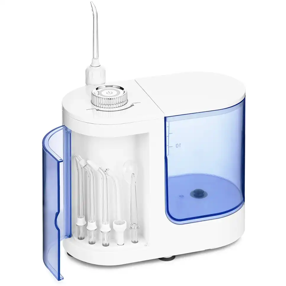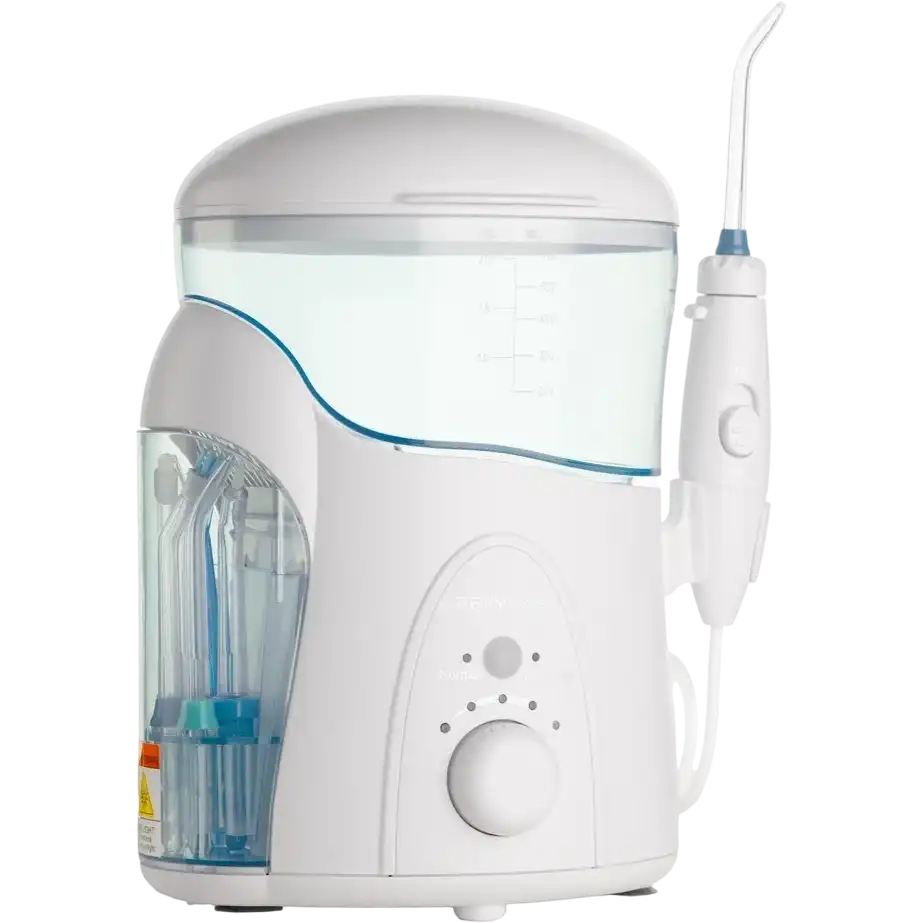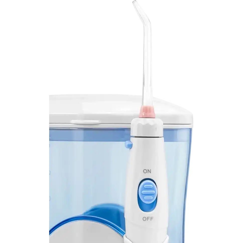 стационарный ирригатор, частота пульсации струи: 1200-1700 имп/мин, количество режимов работы: 1, ёмкость резервуара: 600 мл, количество насадок в комплекте: 7