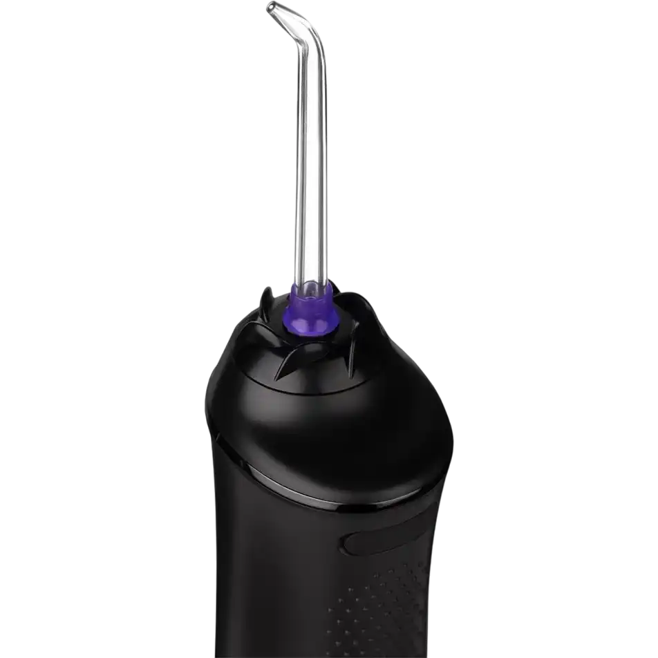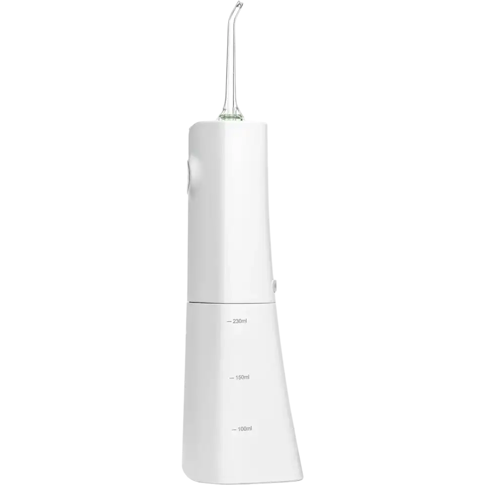 портативный ирригатор, частота пульсации струи: 1800 имп/мин, количество режимов работы: 5, ёмкость резервуара: 230 мл, количество насадок в комплекте: 2