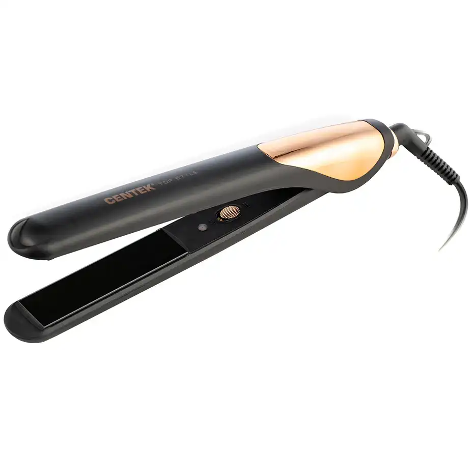 12 мес., 25, механическое, утюжок, CENTEK, www.centek.ru, вращение шнура, петля для подвешивания, керамическое, выпрямление, золотистый, чёрный, 220, Скачать, 85, CT-2023, 22