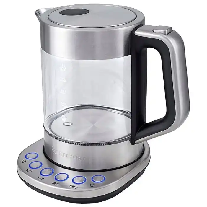 1.4 кг, 12 мес., www.kitfort.ru, Kitfort, 2200, да, 1.5, чайник, да, да, закрытая спираль, да, металл/стекло, да, блокировка включения без воды, да, есть, ступенчатый, температурных режимов – 4, 40 – 100 град., звуковая и световая индикация событий, КТ-616, 1.4