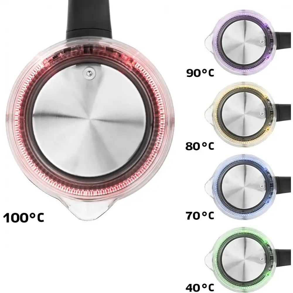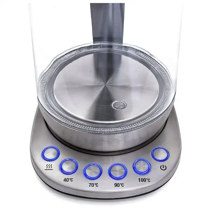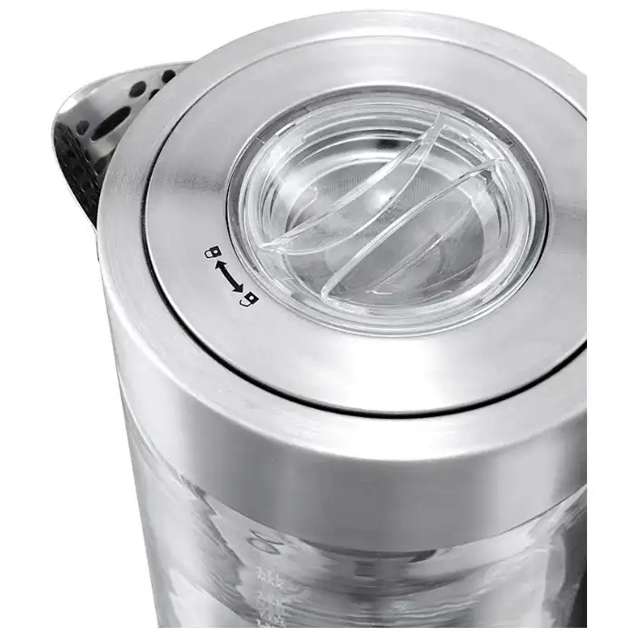 чайник, объём: 1.5 л, мощность: 2200 Вт, закрытая спираль, индикация включения, материал корпуса: металл/стекло, подсветка воды при работе, поддержание тепла