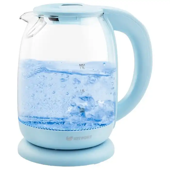 чайник, объём: 1.7 л, мощность: 2200 Вт, закрытая спираль, индикация включения, материал корпуса: пластик/стекло, подсветка воды при работе, поддержание тепла