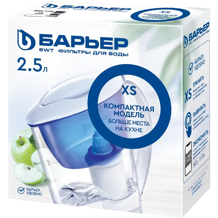 фильтр-кувшин, объём кувшина 2.5 л, ресурс 200 л, очистка от хлора, устранение запахов