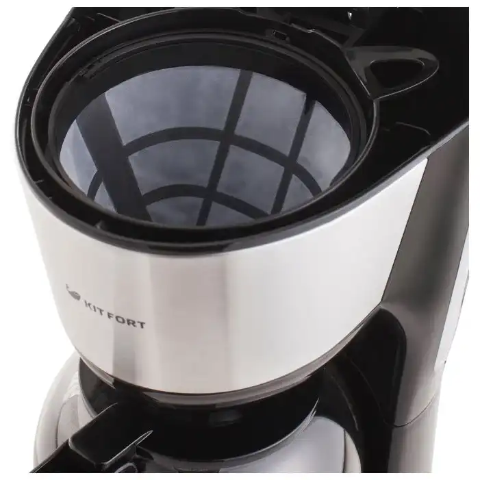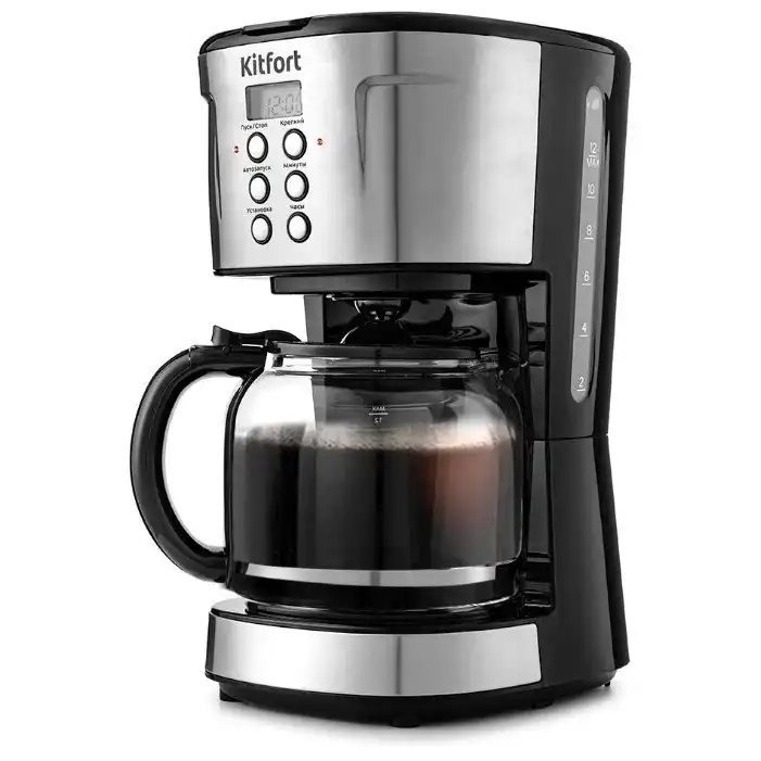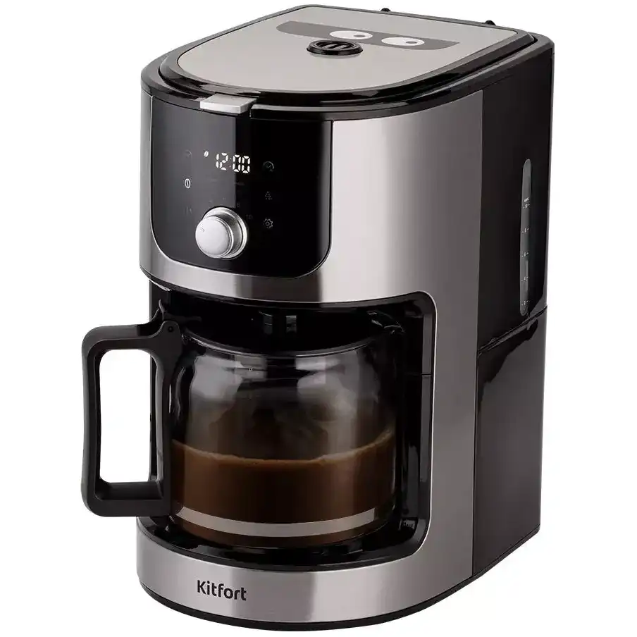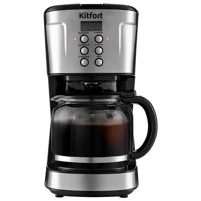 1.8 кг, 12 мес., электронное, www.kitfort.ru, Kitfort, 900, металл, пластик, молотый, капельная кофеварка, постоянный, автоотключение, противокапельная система, бойлер, 183 x 350 x 274 мм, дисплей, плита автоподогрева, КТ-731, 1.6
