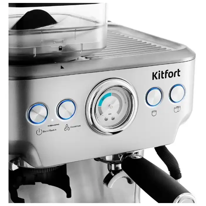 12 мес., 8.8 кг, www.kitfort.ru, Kitfort, металл, пластик, бойлер, да, да, механическое, электронное, рожковая (эспрессо) кофеварка, ручное, зерновой, молотый, капучино, латте, эспрессо, 20, съёмный лоток для сбора капель, съёмный резервуар для воды, крепость кофе, объём порции горячей воды, 300 x 400 x 415 мм, KT-755, 2.7, 200, автоотключение, манометр, одновременное приготовление двух чашек, 15, 1620