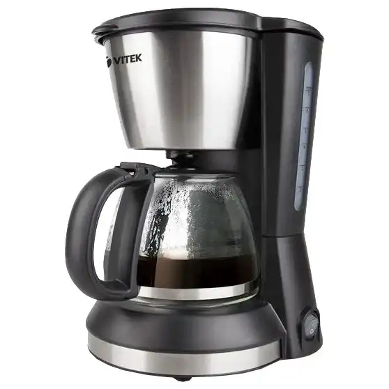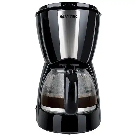 12 мес., электронное, VITEK, www.vitek.ru, 900, противокапельная система, металл, пластик, молотый, капельная кофеварка, постоянный, термоблок, 1.2, VT-1503 BK, индикатор включения, плита автоподогрева