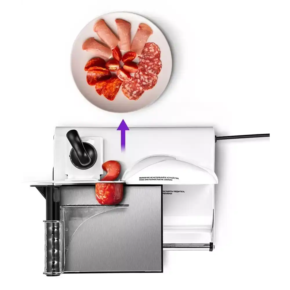 мощность: 150 Вт, толщина нарезки: 0-15 мм, волнообразное лезвие, складной корпус, отсек для кабеля, материал корпуса: пластик