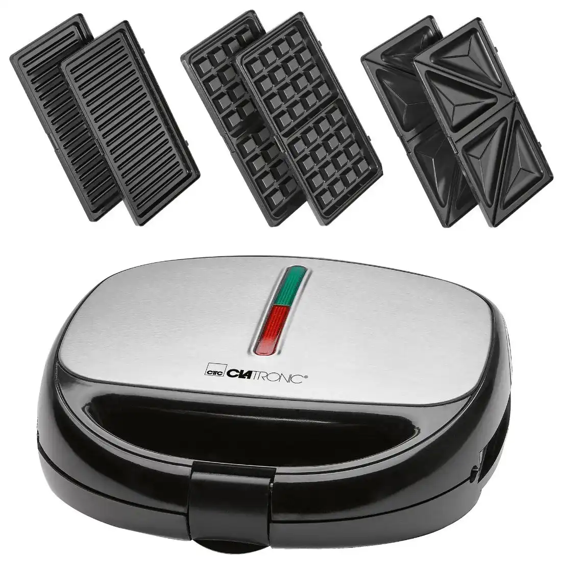 1.5 кг, 12 мес., 800, металл, пластик, да, Clatronic, www.clatronic.com, включения, нагрева/готовности, прорезиненные ножки, ручка для переноски, термоизолированная ручка, фиксатор крышки, серебристый, чёрный, гриль, сэндвич, бельгийские вафли, 240 x 105 x 220 мм, Скачать, ST/WA 3670 Multigrill