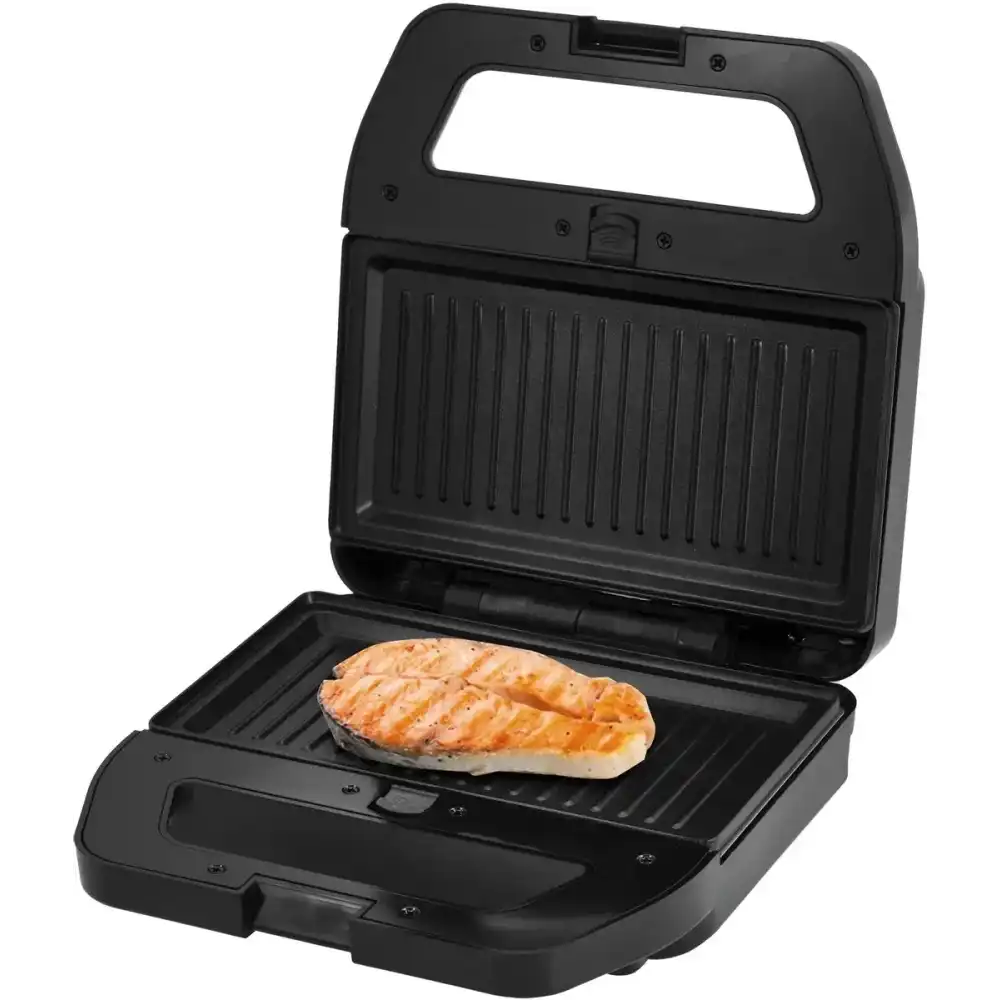 мощность 800 Вт, температура нагрева 230 °C, тип панелей: гриль, сэндвичи, венские вафли