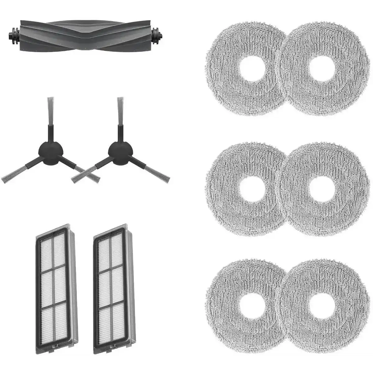 комплект аксессуаров для робота-пылесоса Dreame L10s Pro Gen2: основная щетка, 2 боковые щётки, 2 сетчатых фильтра, 3 пары моющих дисков
