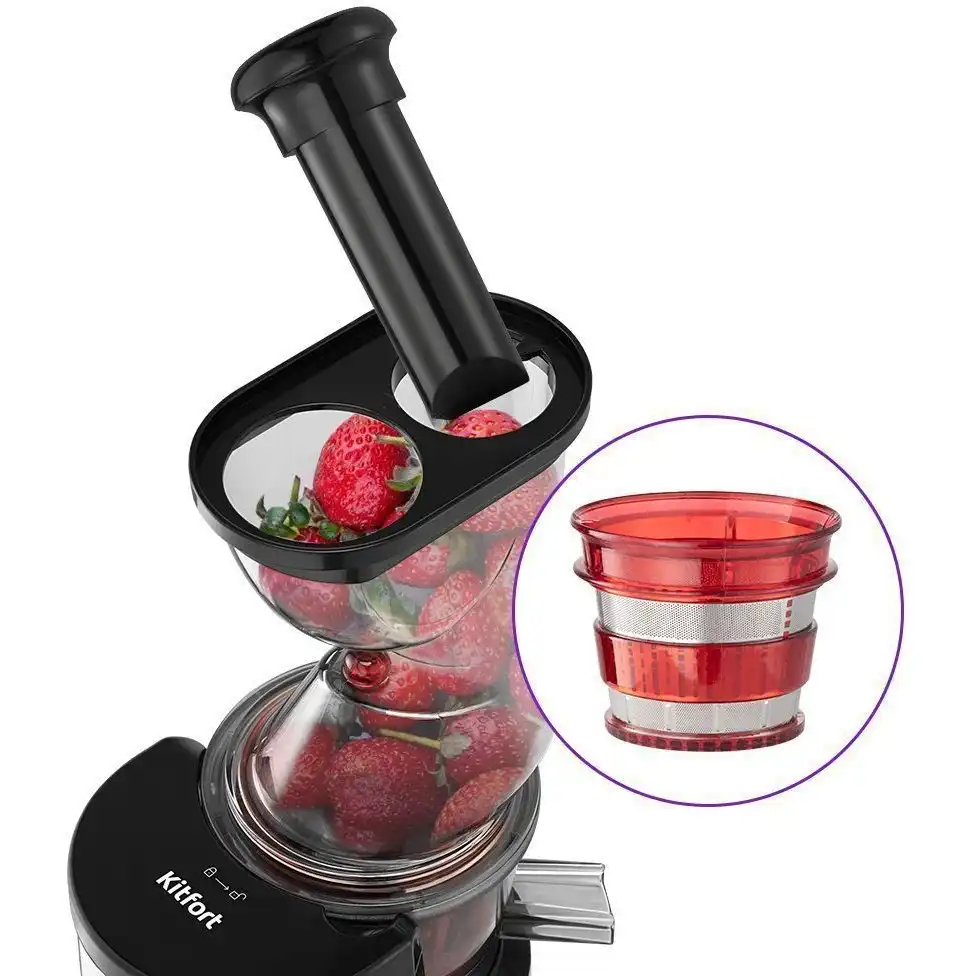 3.2 кг, 12 мес., 150, www.kitfort.ru, Kitfort, да, да, да, 1, шнековая, 0.9, да, блокировка при неправильной сборке, 0.65 л, Скачать, 157 x 499 x 178 мм, КТ-1128, толкатель, контейнер для сока, контейнер для жмыха, щёточка для чистки, 0.8 л, 85, 58