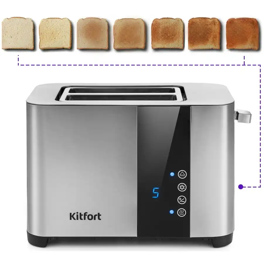 1.3 кг, 12 мес., да, электронное, металл, www.kitfort.ru, Kitfort, 850, да, да, да, 2, да, да, да, 2, да, да, LED-дисплей и сенсорное управление, 7 степеней поджаривания, 75 см, KT-2047