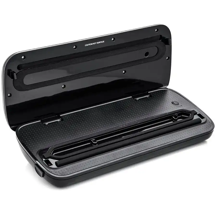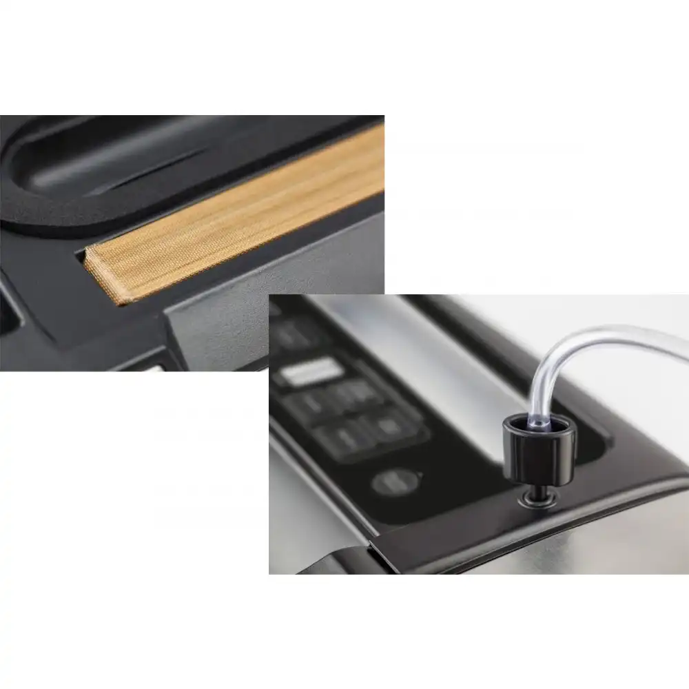 вакуумный упаковщик, мощность: 160 Вт, скорость всасывания: до 20 л/мин, двойной сварочный шов, сварка пакетов шириной до 30 см, импульсный режим, режим маринования, встроенный контейнер для рулона и резак для плёнки, режим для влажных и сухих продуктов