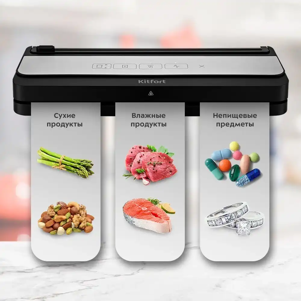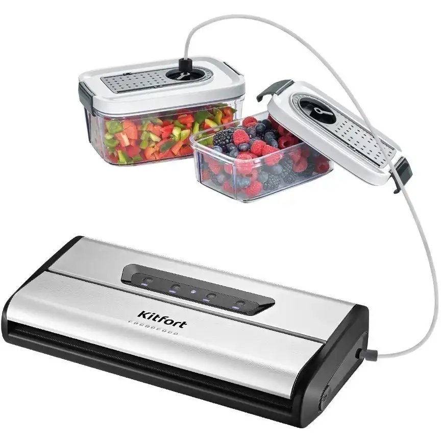 12 мес., www.kitfort.ru, Kitfort, 0.8 кг, 5, 29, 2, 370 x 47 x 89 мм, 3.2, КТ-1527, вакуумный шланг, 0.9, Скачать, автоматический, вакуумирование контейнеров, влажные/мягкие продукты, запечатывание, твердые продукты, 0.6, 95