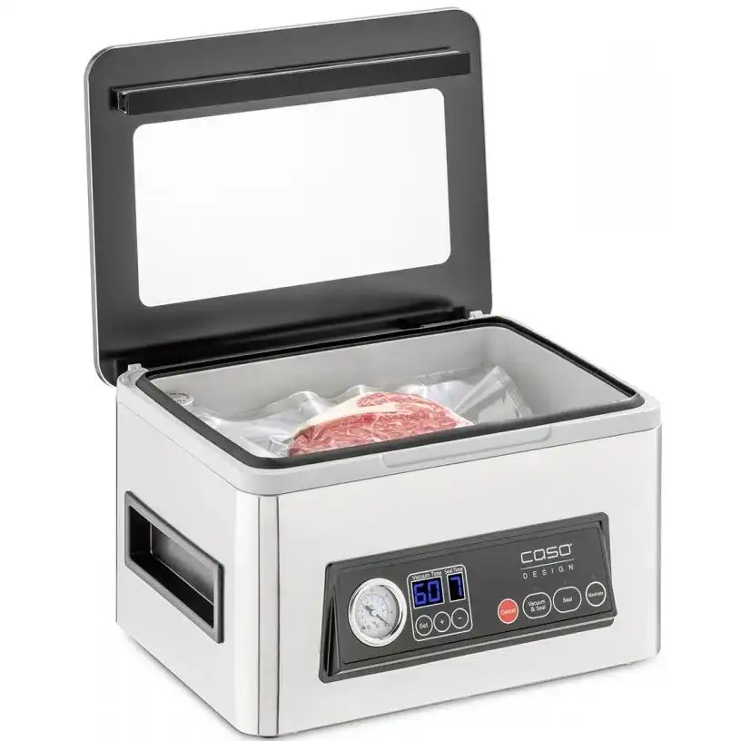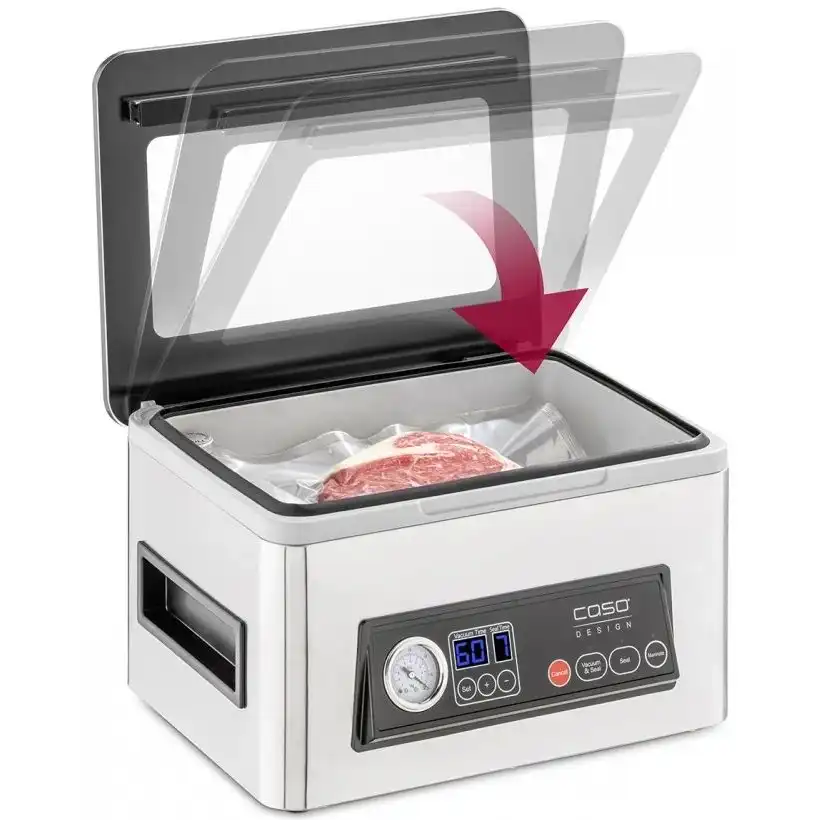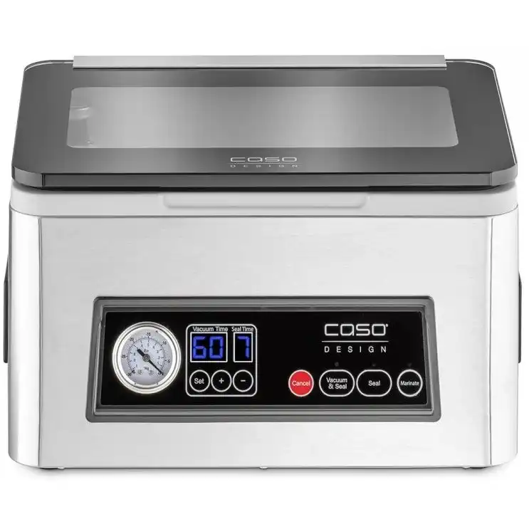 вакуумный упаковщик камерный, может работать с любыми продуктами с разной консистенцией, 2 программы, максимальный ваккум: 0,95 бар, насос: 70 л/мин, управление вынесено на обширную сенсорную панель, манометр на корпусе
