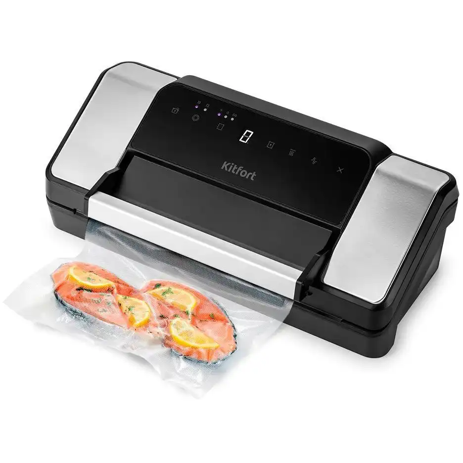 мощность: 110 Вт, скорость всасывания: до 8 л/мин, сварка пакетов шириной до 30 см, режим откачивания воздуха из контейнеров