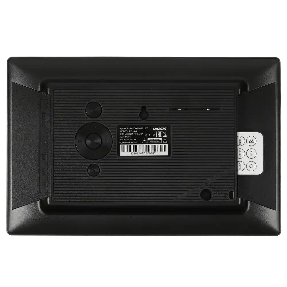 да, чёрный, www.digma.ru, от сети, да, официальная гарантия производителя, 0.37 кг, Digma, USB, да, да, да, Zoom, вращение картинки, 250 кд/м, AAC, MP3, OGG, WMA, ASF, AVI, MOV, MP4, VOB, MPEG1, MPEG2, WMV9, предпросмотр, BMP, GIF, JPEG, PNG, Secure Digital, Secure Digital HC, MultiMedia Card, пульт ДУ, часы, 247x162.7x24мм, 300:1, диагональ 10.1'', 1280x800, формат 16:10