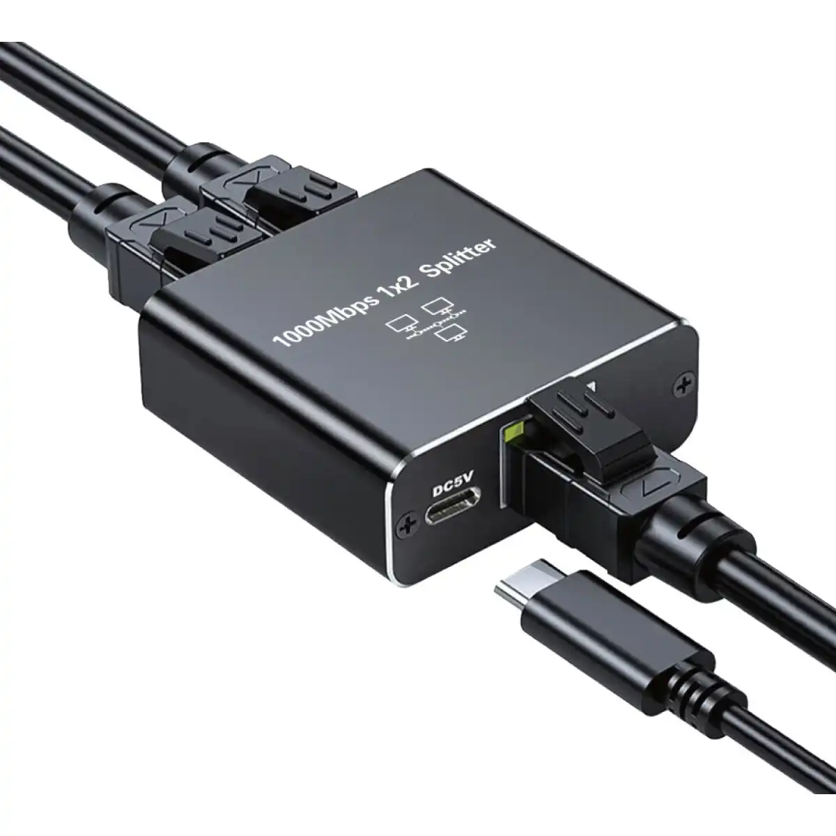 чёрный, 12 мес., 1, пластик, Cablexpert, www.cablexpert.com, разветвитель, нет (UTP), 2 x RJ-45 (F), RJ-45 (F), без монтажа, питание: USB Type-C (кабель в комплекте), скорость: до 1000 Мбит/с, дальность: до 100 м, NCA-SP-03, 55 x 20 x 57 мм