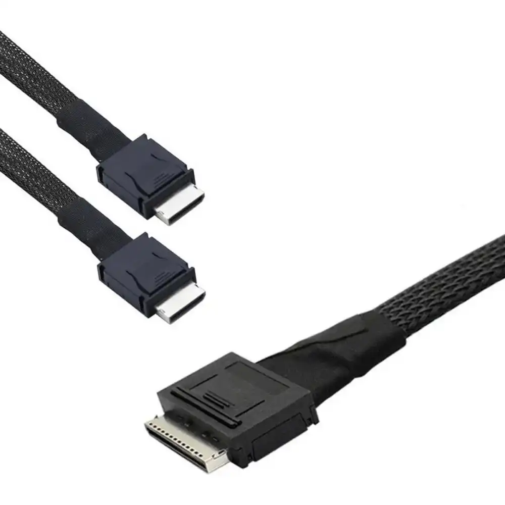 кабель MCIO x8 74P (прямой Straight Type) -TO- 2*MCIO x4 38P (прямой Straight Type), 80 см