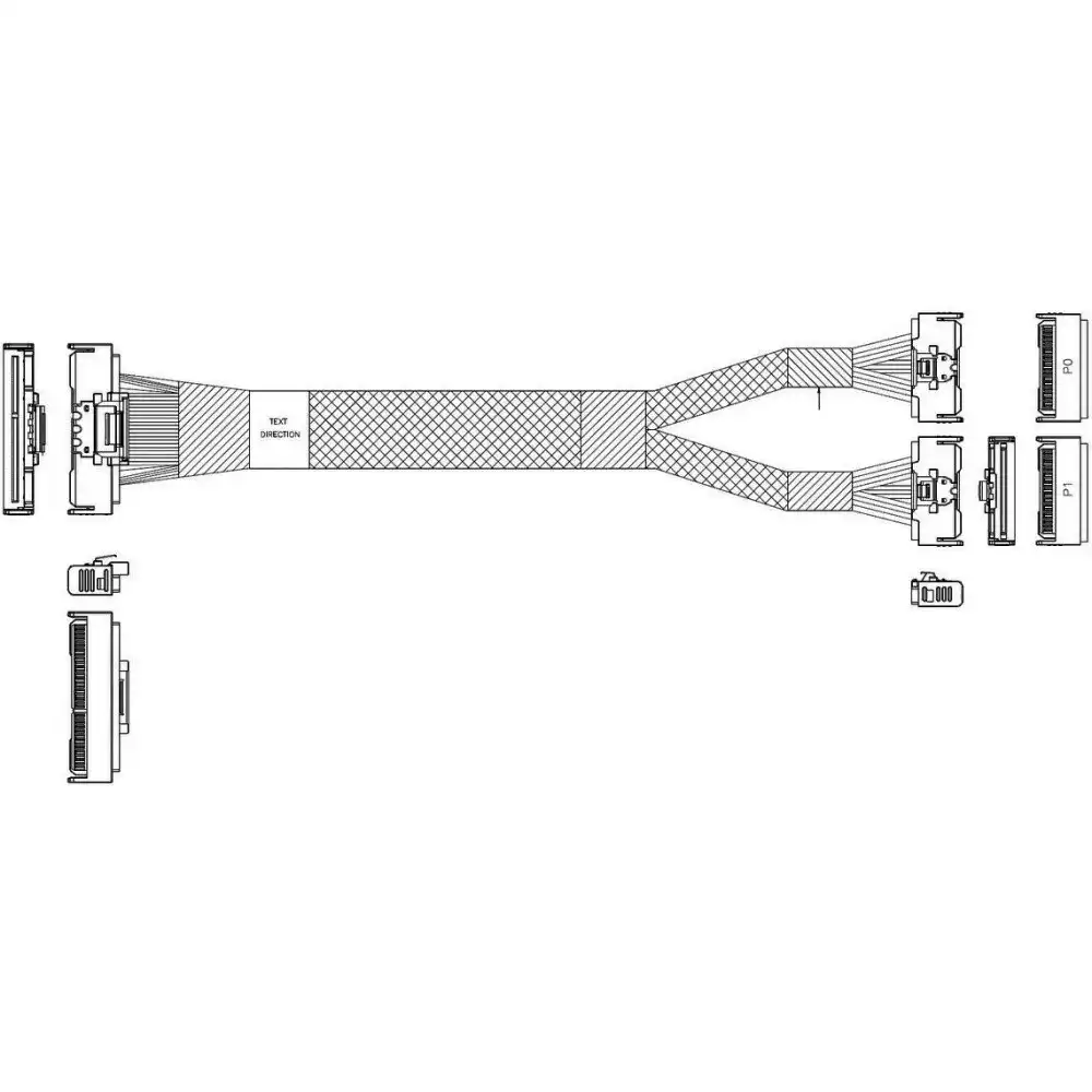кабель MCIO x16 124P (прямой Straight Type) - 2x MCIO x8 74P (прямой Straight Type), 0.8 м