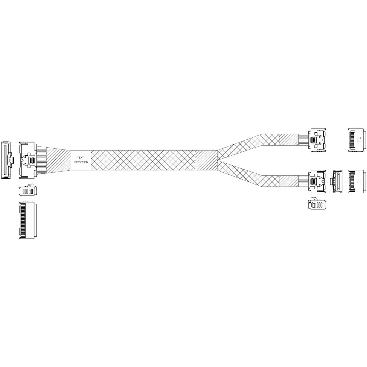 кабель MCIO x8 74P (STRAIGHT TYPE) -TO- 2*MCIO x4 38P (STRAIGHT TYPE), 0.8 м