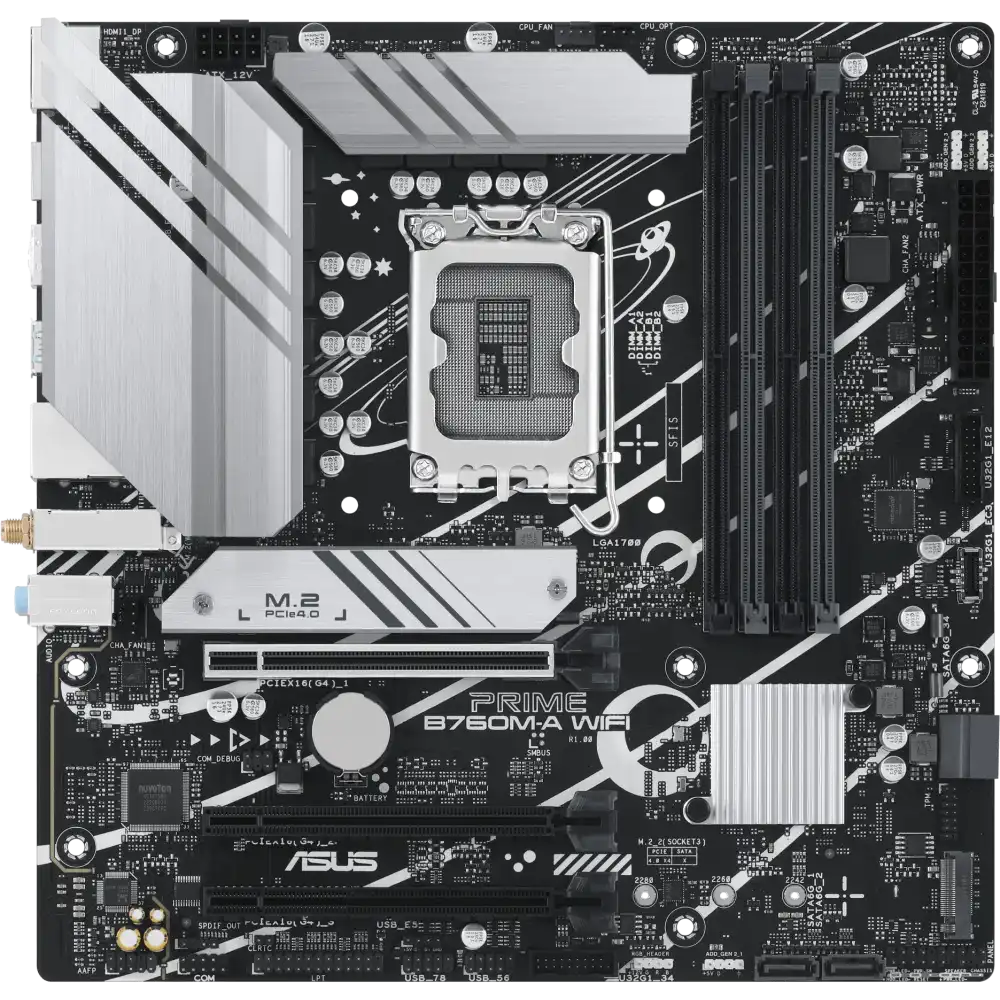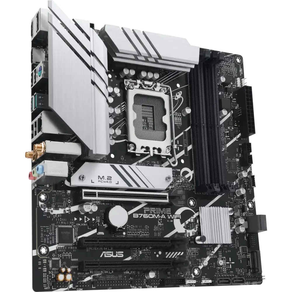 mATX, сокет LGA 1700, чипсет Intel B760, 4xDDR5, PCI-E 5.0, PCI-E 4.0, 2xM.2, сеть: 2.5 Гбит/с, Wi-Fi, Bluetooth, HDMI, DisplayPort