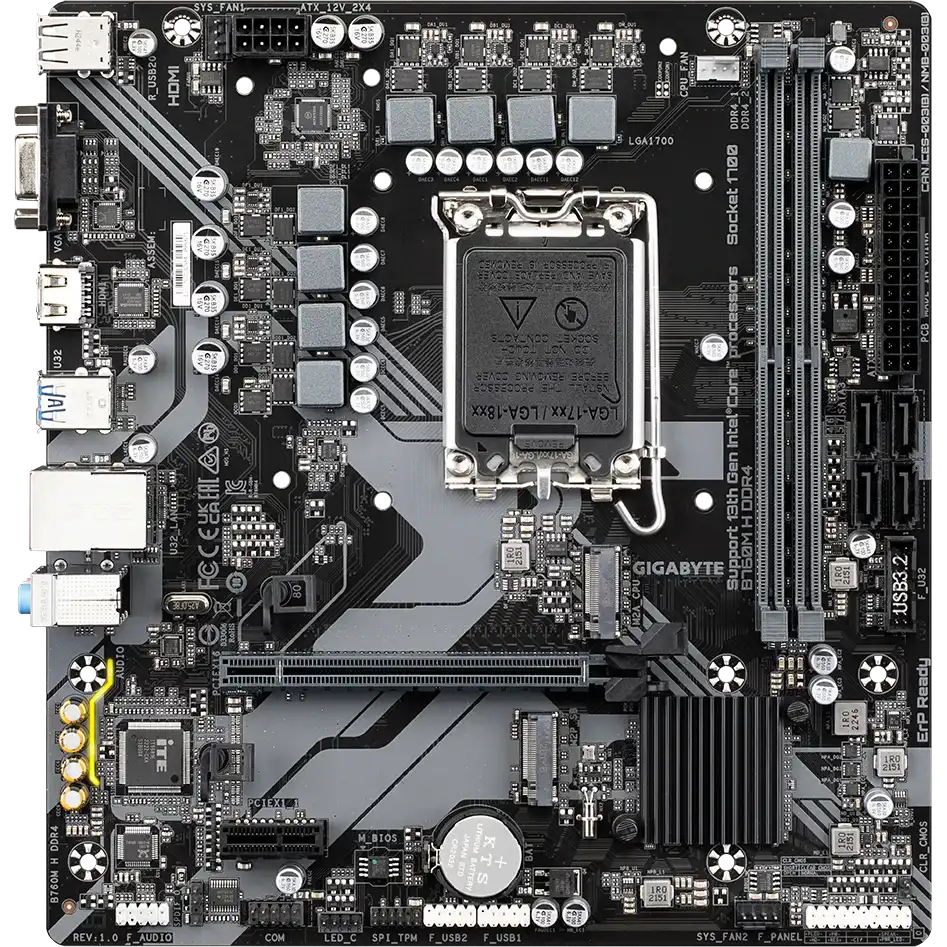 mATX, сокет LGA 1700, чипсет Intel B760, 4xDDR5, PCI-E 4.0, 2xM.2, сеть: 1 Гбит/с, HDMI, DisplayPort