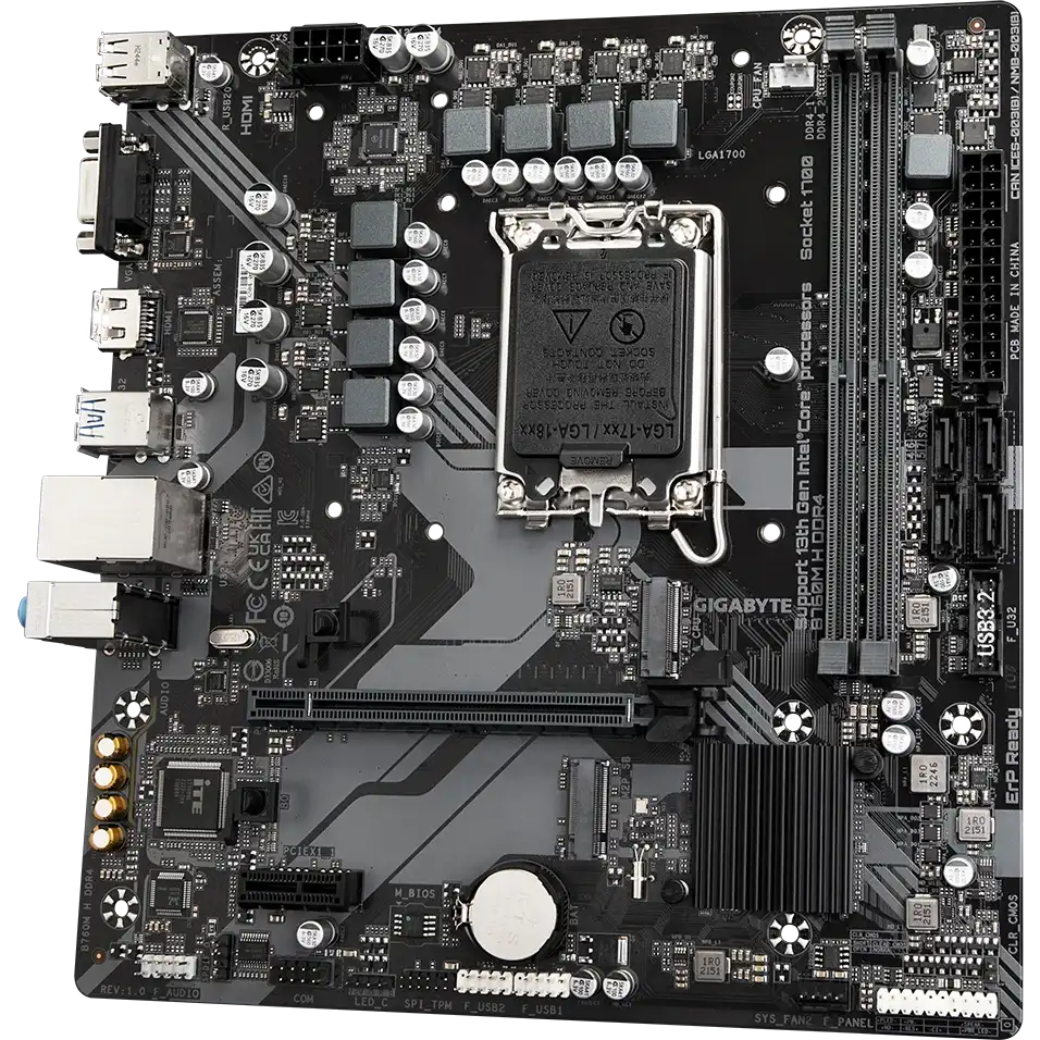mATX, сокет LGA 1700, чипсет Intel B760, 2xDDR4, PCI-E 4.0, 2xM.2, сеть: 1 Гбит/с, HDMI