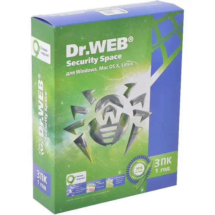 ПО Dr.Web Security Space Картонная упаковка на 3ПК, 12мес (AHW-B-12M-3-A2(A3)/BHW-B-12M-3-A3)