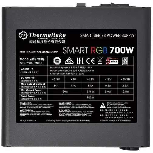 700, да, да, чёрный, 24 мес., 1, активный, 6, 1, ATX12V 2.3, да, 2.5, 20+4 pin, 2, да, 120 мм, 24, Thermaltake, www.thermaltake.com, 0.5, 54, Standard, 17, PS-SPR-0700NHSAWE-1, 5
