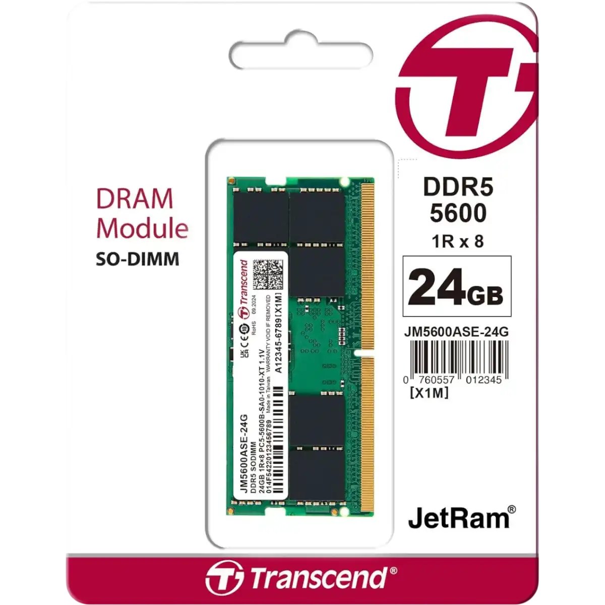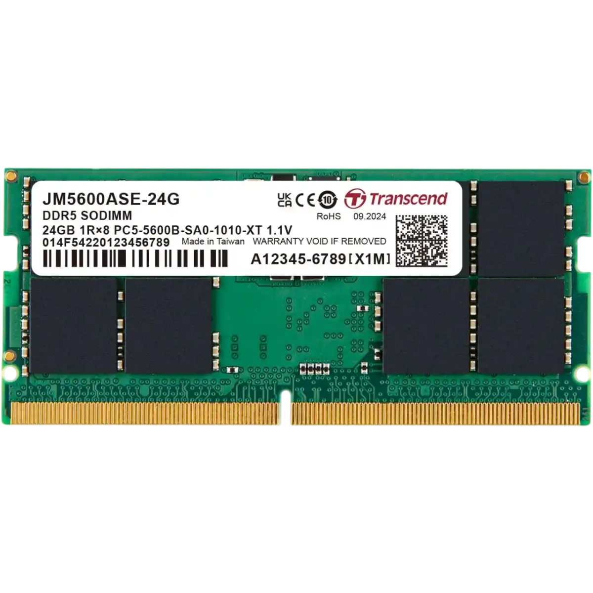 DDR5, SO-DIMM, 36 мес., зелёный, 1, нет, Transcend, www.transcend-info.com, 1.1, 30, 24 Гб, 24 Гб, 5600, 44800, 46, 1, JM5600ASE-24G, Скачать