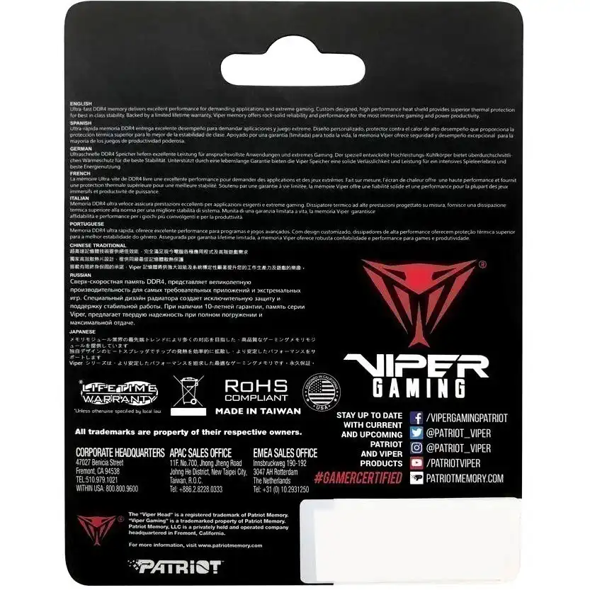 Оперативная память 8Gb DDR4 3200MHz Patriot Viper Steel SO-DIMM (PVS48G320C8S)