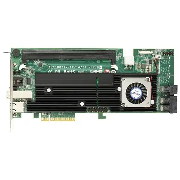 12 мес., 2 Гб, контроллер RAID, PCI-E x8, 8, SAS/SATA, 2 x mini SAS HD (SFF-8643), 12 Гбит/с, Broadcom SAS3108, Areca, www.areca.com.tw, 0, 1, 3, 5, 6, 10, 30, 50, 60, JBOD, ARC-1883i