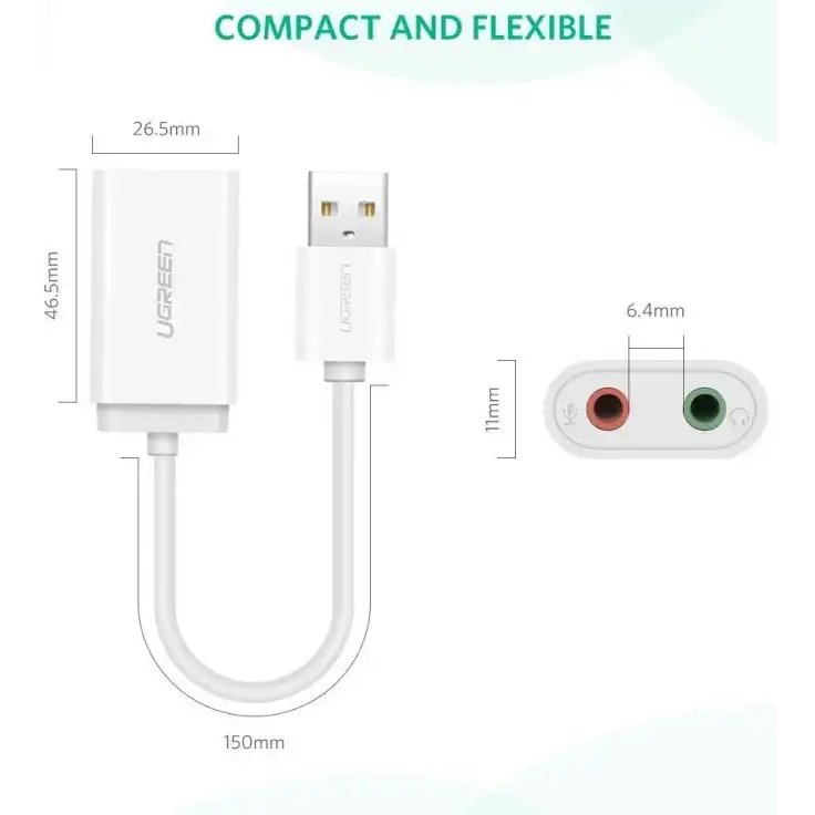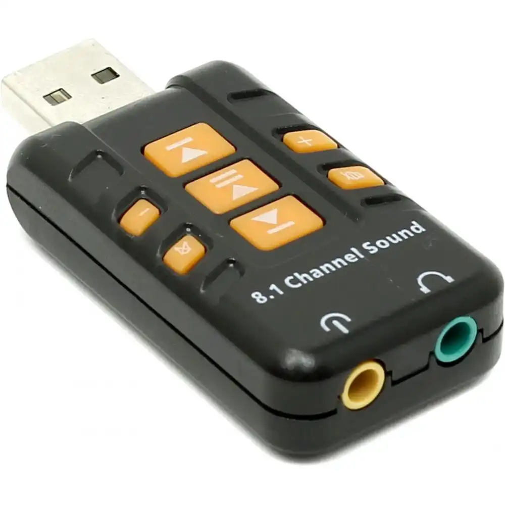 внешняя звуковая карта, интерфейс USB 2.0, подключение микрофона, аналоговые аудиовыходы: mini jack 3,5 мм ЦАП 16 бит / 44.1 кГц