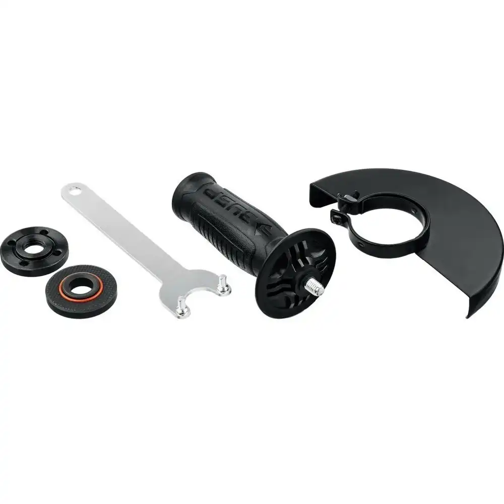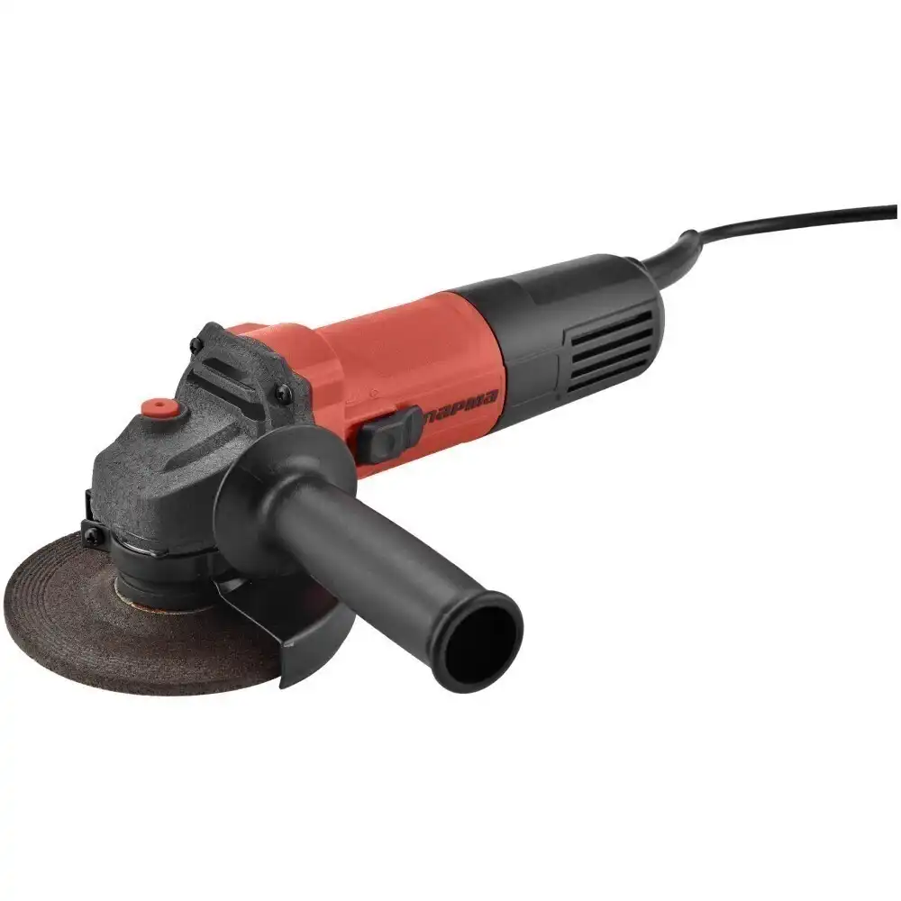 угловая шлифмашина, мощность 900 Вт, частота вращения диска 11000 об/мин, диаметр диска 125 мм, питание от сети, дополнительная рукоятка