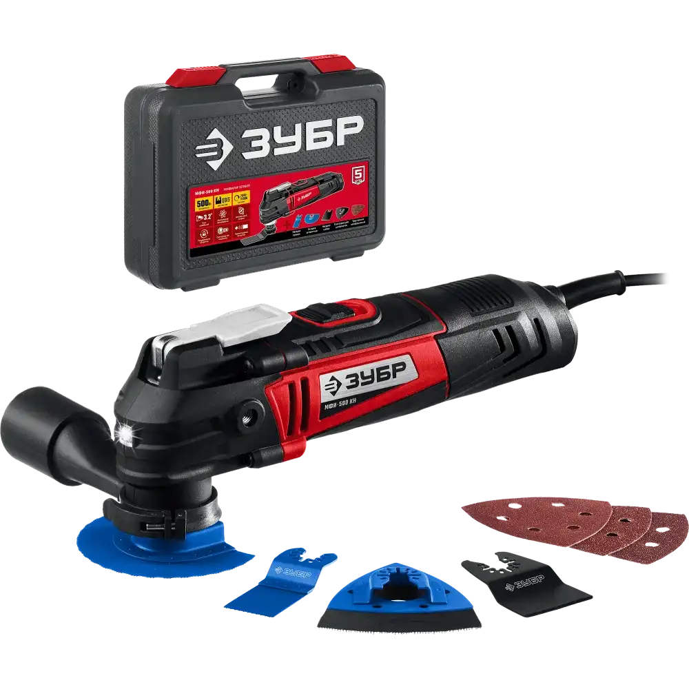 1.5 кг, 3, ЗУБР, www.zubr.ru, от сети, 500, официальная гарантия производителя, регулировка оборотов, многофункциональная, МФИ-500 КН, 340 x 255 x 90 мм, 19000