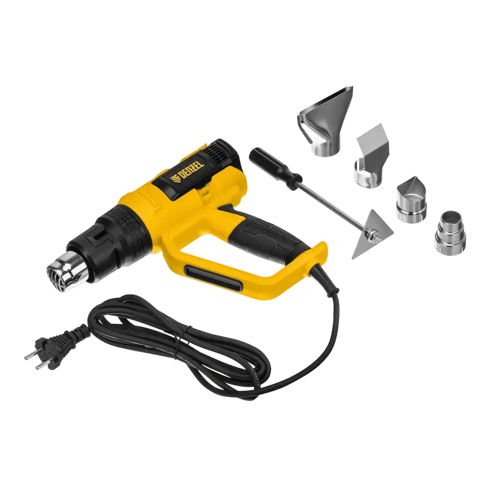 мощность 2000 Вт, температура от 50 °С до 600 °С, плавная регулировка, 250-500 л/мин
