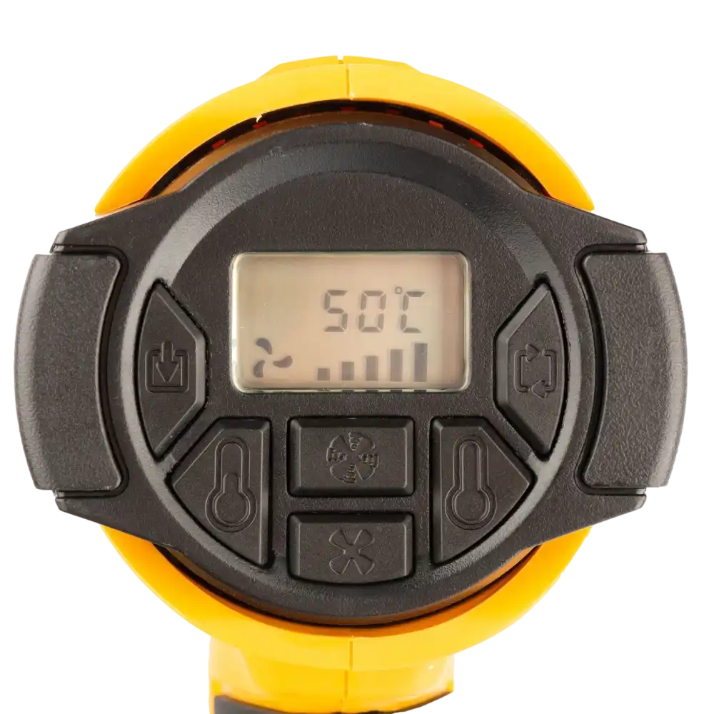 мощность 2000 Вт, температура от 50 °С до 600 °С, ступенчатая регулировка, 250-500 л/мин, ЖК-дисплей