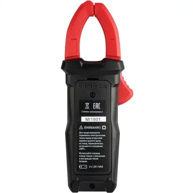 токоизмерительные клещи, функции: 'прозвонка', питается от: 2хААА