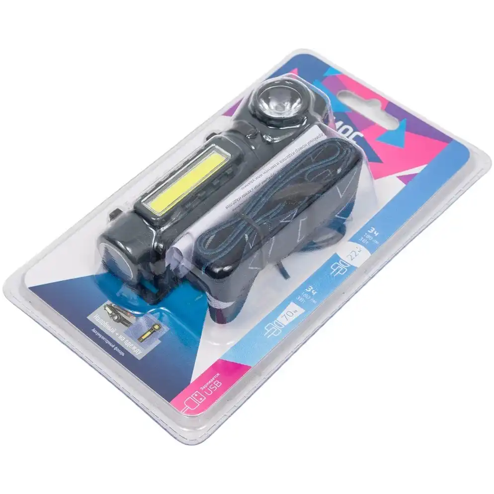 фонарь налобный, световой поток: 180 Лм, дальность освещения: 70 м, цветовая температура: 4500 K, мощность: 3 Вт, собственный аккумулятор, степень защиты IP54
