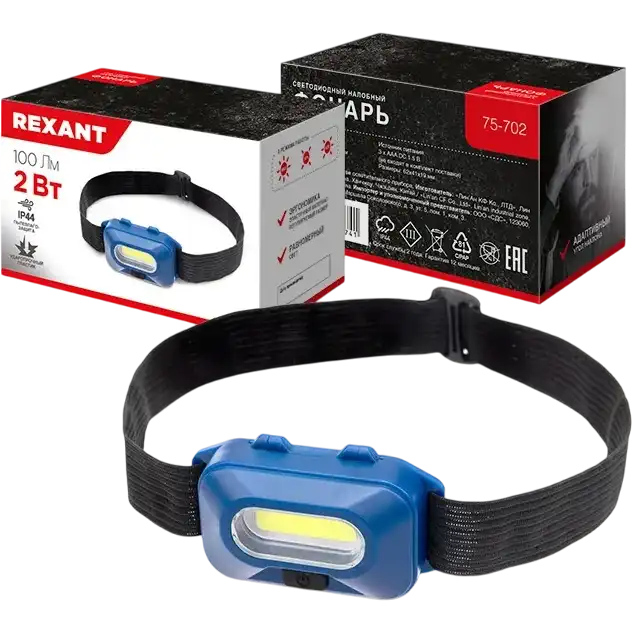 пластик, 3, от батареек, Rexant, www.rexant.ru, официальная гарантия производителя, IP44, налобный, 3 x AAA, 25, 2, 75-702, 100