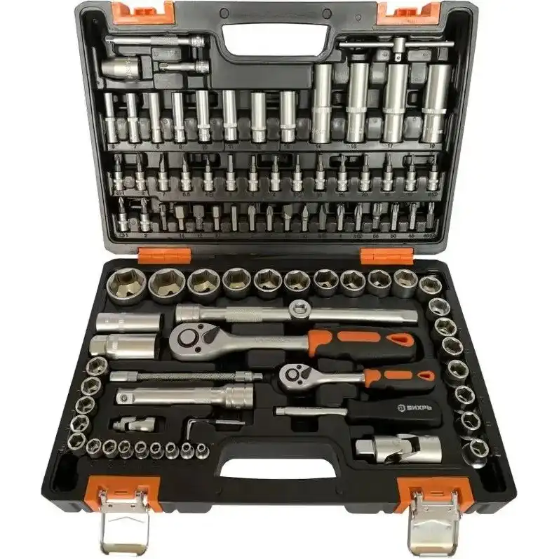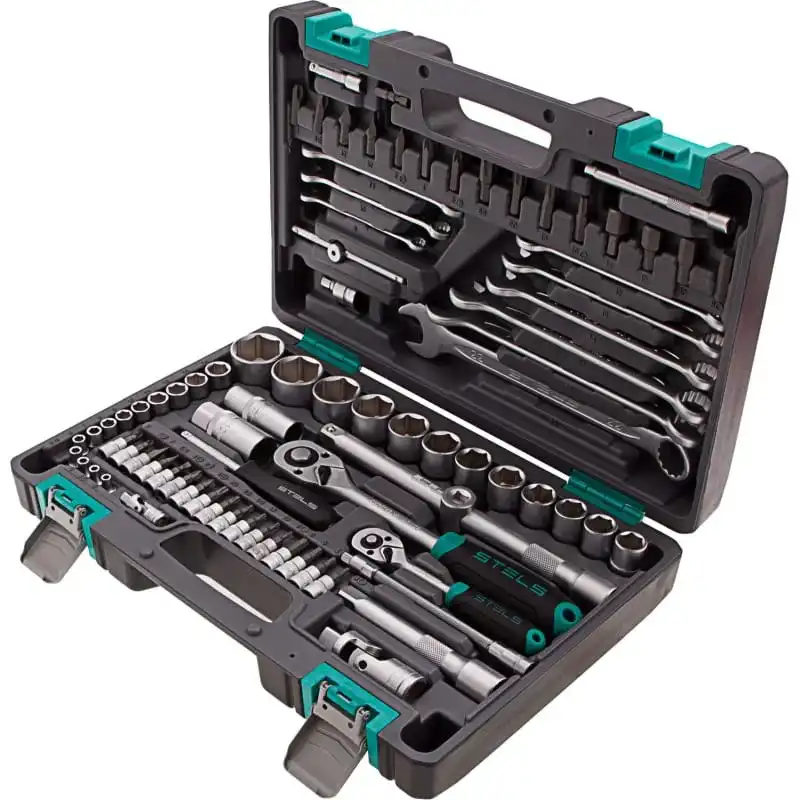 автомобильный набор инструментов, количество предметов в наборе: 94 шт., присоединительный размер: 1/2', 1/4', размер торцевых головок: 4-32 мм, кейс